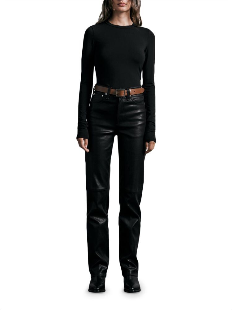 Прямые кожаные брюки ICONS Alex с высокой посадкой Rag & Bone, черный 22 146₽