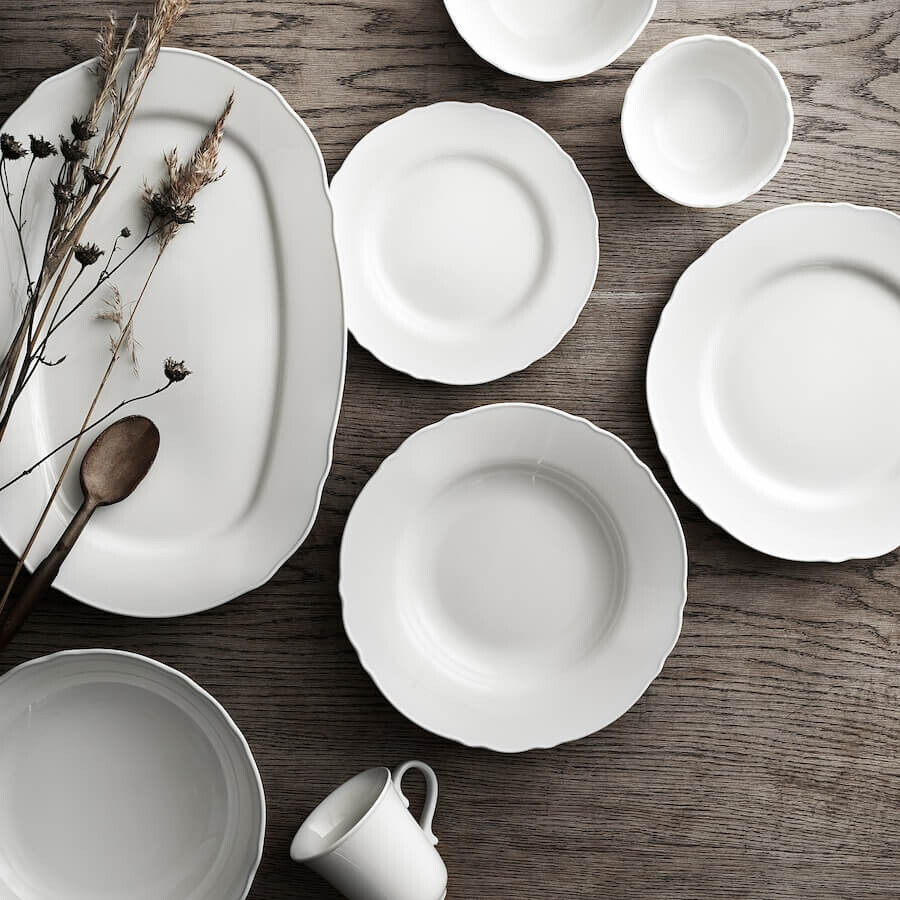 Изготовлен из ударопрочного и прочного полевошпатового фарфора.
