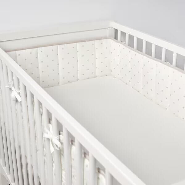 Мягкое наполнение предотвращает удары малыша головой, ручками или ножками о твердые прутья кровати. Изготовлен из одного куска. Легко прикрепляется. Декоративные полосы удерживают защитный край на месте. Безопасная и надежная среда для сна важна для младенцев. Защита краев предотвращает удары ребенка головой, руками или ногами о кроватку. Толстая, мягкая защита краев из хлопка и лиоцелла - достаточно прочная, чтобы ее нельзя было сместить, ударив ногой или ручкой. Воздухопроницаемый наполнитель обеспечивает приятную среду для сна. 4 стороны этого милого гнездышка прикреплены к базовой части. Так что все, что вам нужно сделать, это положить матрас, и ничто больше не будет скользить. Декоративные ремешки на крышке препятствуют соскальзыванию защиты краев. Мягкая, гладкая поверхность долговечна и не содержит веществ, фталатов или химических веществ, которые могут нанести вред детской коже или здоровью.
