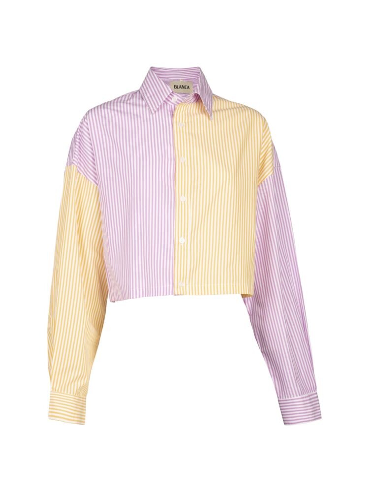 Укороченная полосатая рубашка Thomas Blanca, цвет Pink Multi