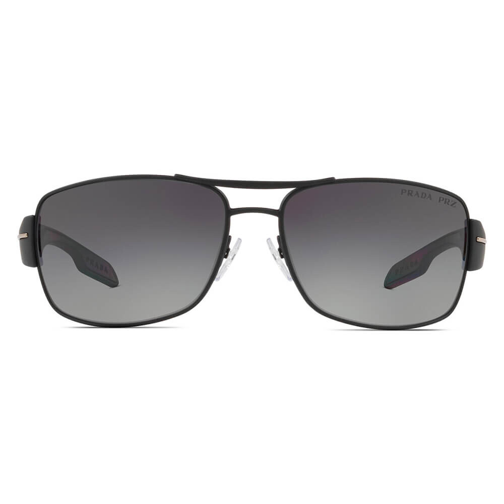 Черные солнцезащитные очки с поляризованными серыми градиентными линзами от Prada.