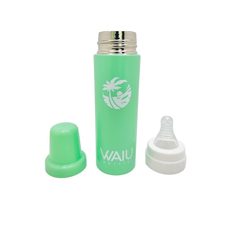Waiu Bottle — это детская термо-бутылочка. Сохраненяет жидкость холодной до 24 часов и теплой до 8 часов. В комплекте с антиколиковой соской. При производстве используется технология вакуумного уплотнения с двойными стенками. Бутылочка имеет тонкий и легкий дизайн, чтобы поместиться в кармане для пеших прогулок, путешествий и других мероприятий на ходу