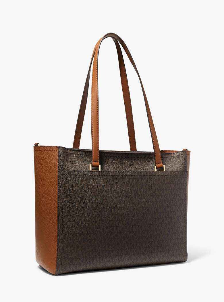 Большая универсальная сумка-тоут Maisie 3-в-1 с логотипом. Носите большую сумку с принтом Signature отдельно, чтобы мгновенно придать изюминку вашему офисному образу, или прикрепите клатч-конверт к переднему накладному карману, чтобы добавить немного новизны. Для вечернего выхода или в дни, когда вы хотите путешествовать налегке, носите одну из съемных сумок.