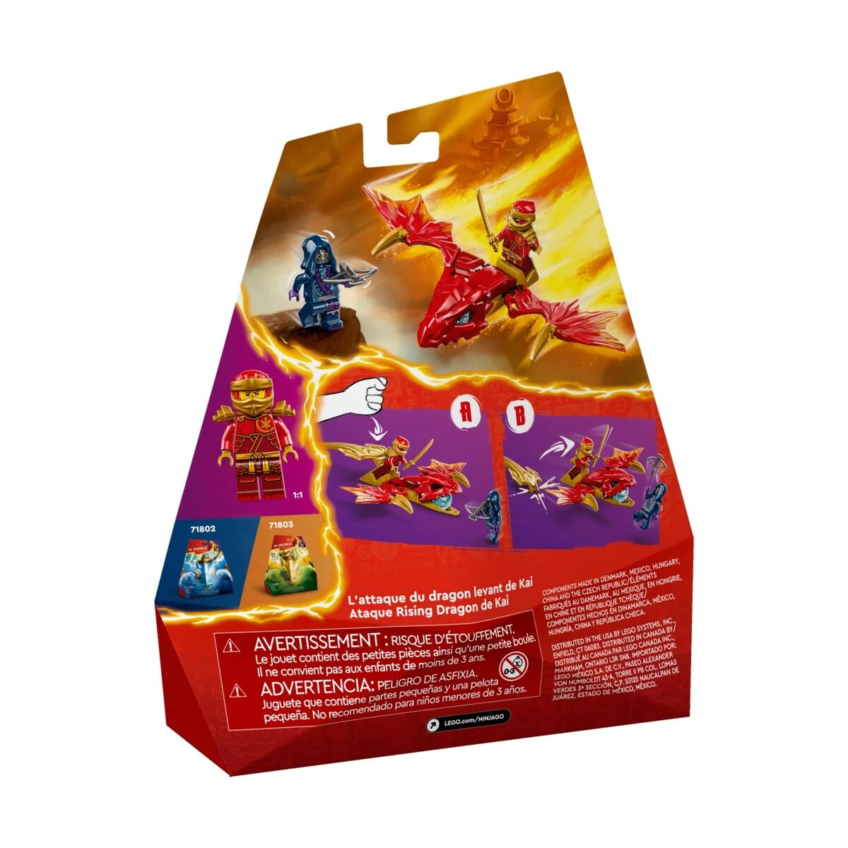 Мальчики и девочки в возрасте от 6 лет и старше могут воссоздать приключения из второго сезона телешоу NINJAGO Dragons Rising с помощью строительного набора LEGO «Удар восходящего дракона Кая» (71801). Детям будет интересно собрать первую в мире игрушку-дракона LEGO NINJAGO, а затем бросить дракону по золотому хвосту и наблюдать, как он начинает действовать. В этот игровой набор входят 2 минифигурки: Кай-восходящий дракон, который поставляется с аксессуаром-мечом катаной и может ездить на сборной фигурке дракона, и Страж в маске волка с аксессуаром для арбалета. Дети могут устраивать сражения между этими персонажами LEGO NINJAGO, чтобы выиграть элемент силы синего дракона из подвижной пасти фигурки дракона. Остальная часть линейки сборных игрушек ниндзя LEGO NINJAGO для детей включает в себя роботов, транспортные средства и храмы, чтобы фанаты могли разыгрывать истории со своими героями (наборы продаются отдельно). Любую фантастическую игрушку можно создать с помощью приложения LEGO Builder, которое поможет вам и вашему ребенку в простом и интуитивно понятном приключении по сборке.