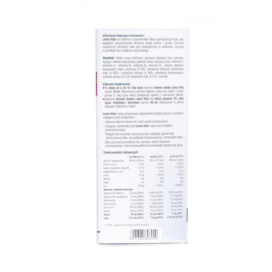 Loma Vital — жидкая пищевая добавка, приготовленная для обеспечения поступления суточной дозы железа и цинка.