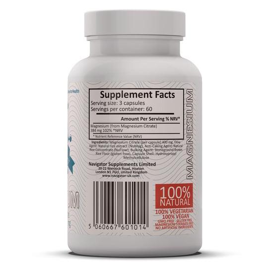 Общая информацияСостав: магний в виде цитрата магния, антислеживатель: натуральный рисовый концентрат (NuFlow), смазка: натуральный рисовый экстракт (NuMag), наполнитель: мука из коричневого риса (без глютена), оболочка капсулы: гидроксипропилметилцеллюлоза.