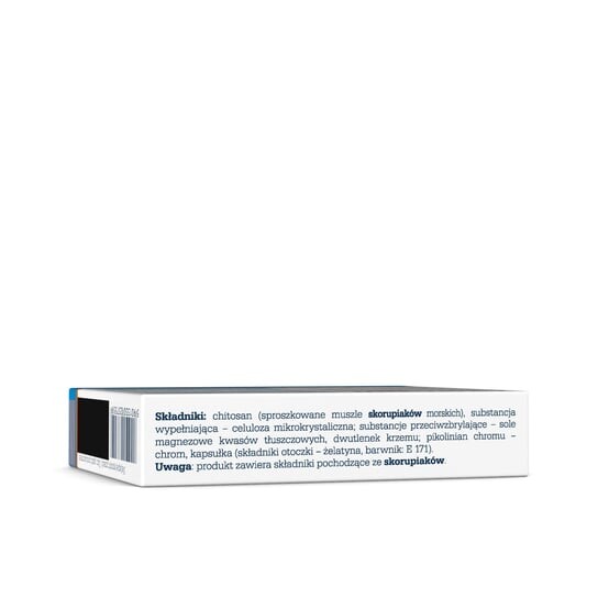 Хитозан – это пищевая клетчатка, выделенная из панцирей ракообразных, обладающая желирующими и абсорбирующими свойствами. Хром, содержащийся в препарате, способствует правильному метаболизму макронутриентов, таких как углеводы и жиры, а также помогает поддерживать правильный уровень глюкозы в крови. Правильный уровень глюкозы в крови позволяет избежать приступов голода и перекусов между приемами пищи.