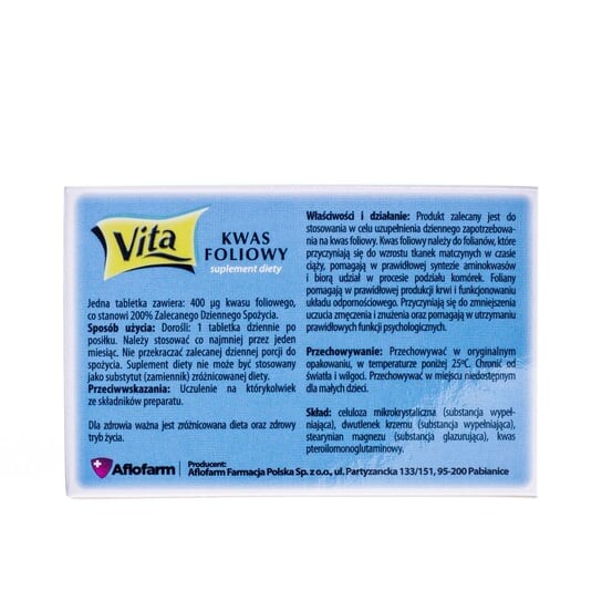 Одна таблетка содержит 400 мкг фолиевой кислоты, что составляет 200 % рекомендуемой суточной дозы.