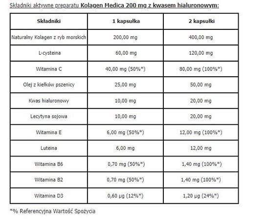 • Состав: натуральный коллаген из морской рыбы, масло зародышей пшеницы, триглицериды со средней длиной цепи (носитель), L- цистеин, витамин С (L-аскорбиновая кислота), моностеарат глицерина (загуститель), соевый лецитин, витамин Е (D-альфа-токоферол), лютеин, витамин В6 (пиридоксина гидрохлорид), витамин В2 (рибофлавин), витамин D3 (холекальциферол). ) . Состав оболочки капсулы: желатин говяжий, красители: диоксид титана, патентный синий V.