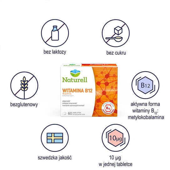 Могут содержать следы ракообразных, рыбы, сои и их производных. Витамин B12 от Naturell содержит подсластитель. Препарат не содержит сахара.