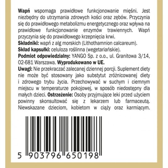 Кальций из морских водорослей (Lithothamnium Calcareum). Состав капсул: Растительная целлюлоза (вегетарианская)