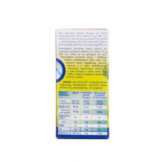 Состав: растительное масло MCT (триглицериды со средней длиной цепи), холекальциферол - масляный концентрат (витамин D3), антиоксидант - DL-a токоферол