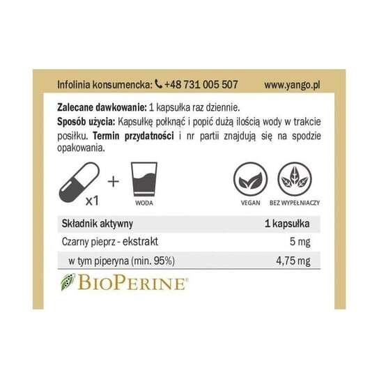 Piperina95 от Yango содержит СИЛЬНЫЙ ЭКСТРАКТ черного перца. Это означает, что, используя этот препарат, вы получите заметно лучшие результаты по сравнению с добавками на основе молотого перца. Экстракт и порошкообразное растение имеют огромную разницу в воздействии на организм человека.