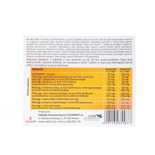 Be Slim Fast, Добавка , 60 таблеток Colfarm