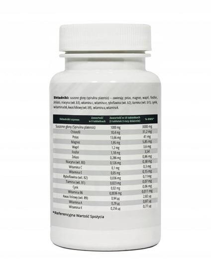 Информационная таблица Основной ингредиент: спирулина Ингредиенты: Высушенные микроводоросли спирулины (Spirulina Platensis) Содержание таблетки: Содержание в 15 таблетках: