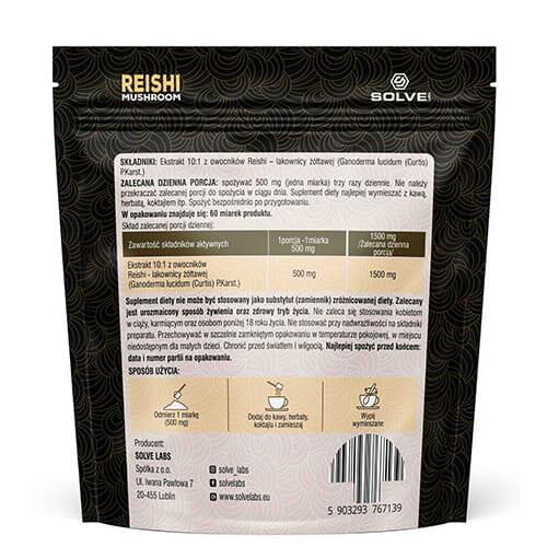 Экстракт плодовых тел рейши 10:1.Как применять: Рекомендуемая суточная доза, необходимая для получения положительного эффекта: по 1 мерной ложке 3 раза в день. , смешать с кофе, чаем или коктейлем, употребить сразу после приготовления (в упаковке 100 порций). Противопоказания: Продукт не может использоваться в качестве замены разнообразного питания. Сбалансированное питание и здоровый образ жизни являются основой правильного функционирования организма. Не превышайте рекомендуемую суточную дозу. Если вы принимаете лекарства или другие пищевые добавки, проконсультируйтесь с врачом. Хранение: Хранить при комнатной температуре. Берегите от влаги. Хранить в недоступном для маленьких детей месте.