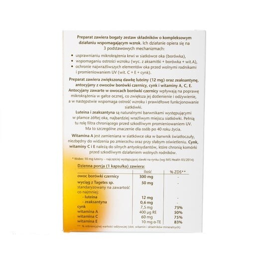 Биологически активная добавка, которая является очень богатым источником лютеина, биофлавоноидов черники и витаминов А, С и Е, которые благотворно влияют на глаза.