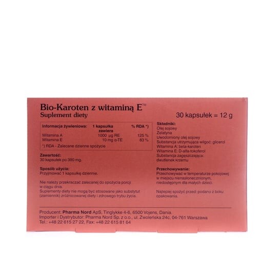 Био-каротин с витамином Е, Добавка , 30 капсул Pharma Nord