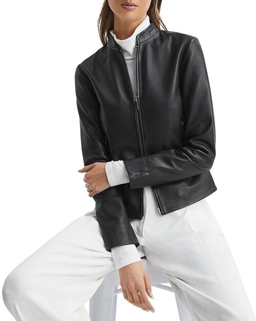 Кожаная косуха Allie REISS, цвет Black