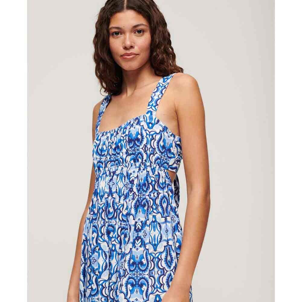 Платье-миди без рукавов с завязками на спине SUPERDRY синего цвета с плиточным принтом — потрясающий и модный предмет женского гардероба. Это платье с ярким плиточным принтом добавит яркости и стиля любому гардеробу. Модель без рукавов и длина миди делают его идеальным для теплых летних дней или вечерних мероприятий.