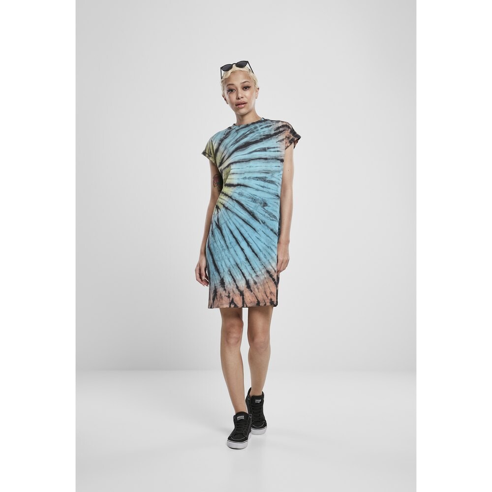 Летнее платье тай-дай для ярких модниц и любительниц жизни. Платье широкого прямого кроя привлекает внимание своим цветом и узором. Повседневный стиль подчеркнут закатанными зауженными рукавами и круглым вырезом в рубчик. Эффектное платье для прекрасного лета. Oberstoff 1: 100% Baumwolle, Single Jersey, 180 GSM.