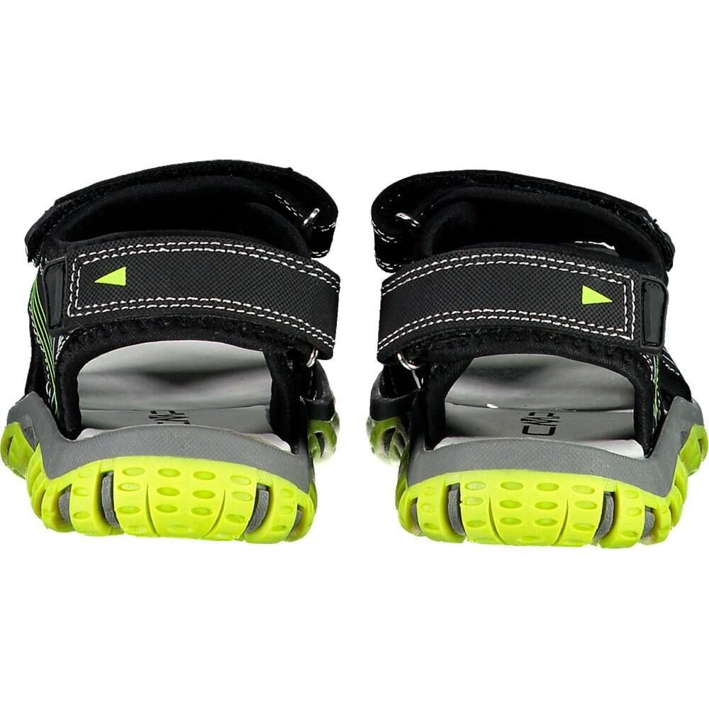Детские сандалии из сетки и полиуретана с подкладкой из лайкры и системой застежки/регулировки на трех разных частях для более плотного прилегания.