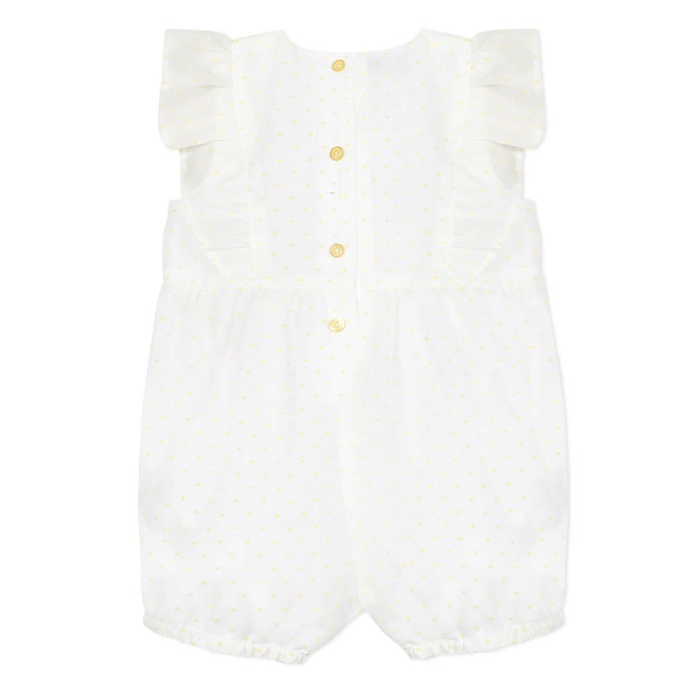 Комбинезон из белой вуали в желтый горошек из плюмети.