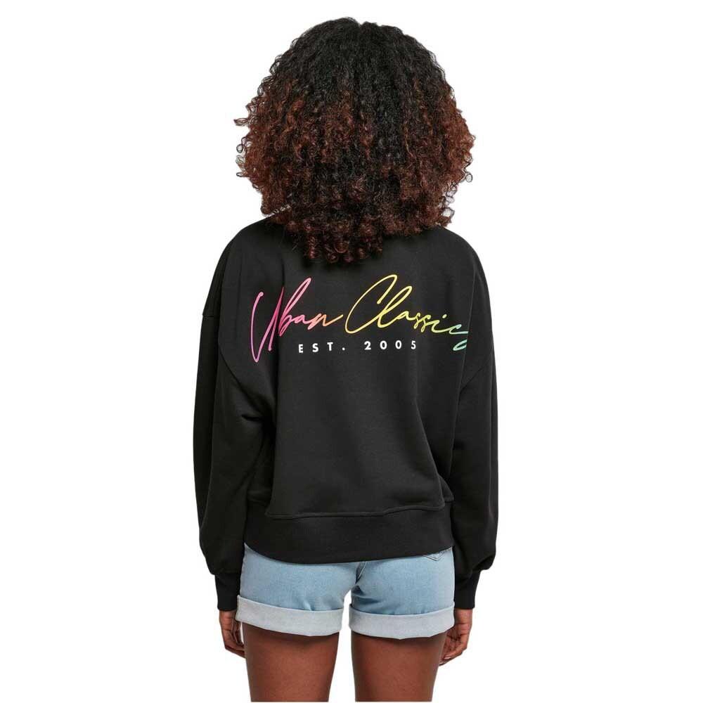 Яркий брендинг на спине определяет дизайн этой женской толстовки. Надпись-логотип Urban Classics напечатана в цветах радуги и украшает заднюю часть. Повседневный крой оверсайз с обширными плечами и мягкая махровая ткань обеспечивают дополнительный комфорт при ношении.