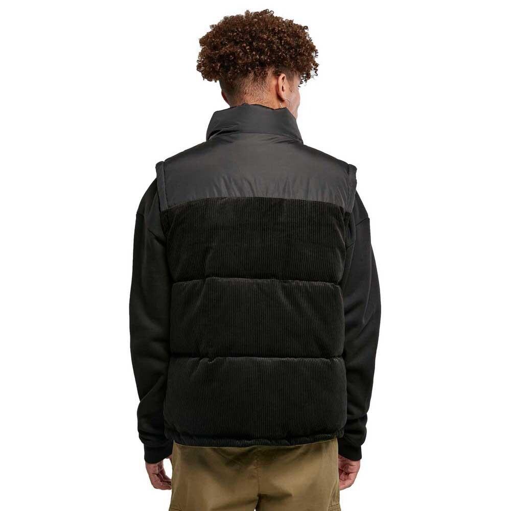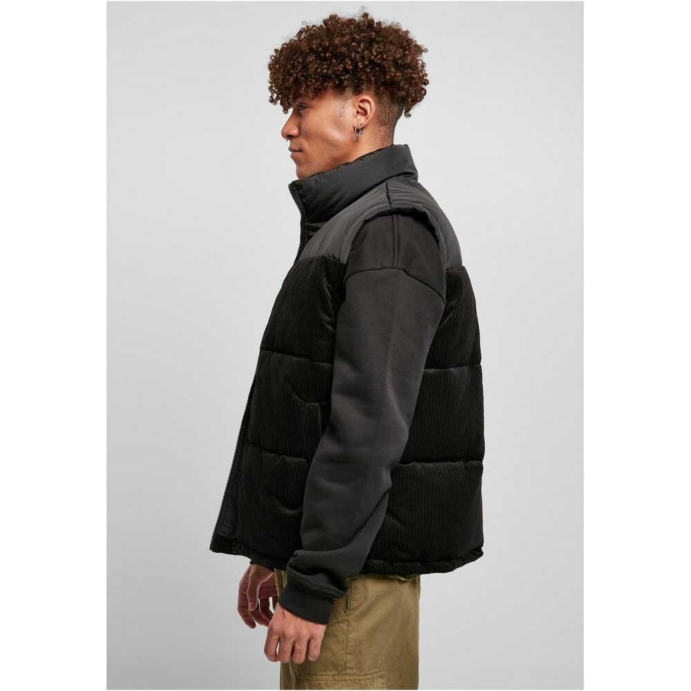 В этом мужском жилете сочетаются два контрастных материала — вельвет и полиэстер — с теплой подкладкой, что создает уникальный образец городской моды.
