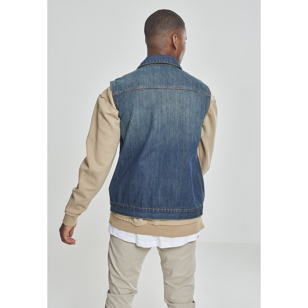 Всегда вперёд, ещё больше назад! Вернемся в 80-е годы — таков девиз этого джинсового жилета без рукавов от URBAN CLASSICS. Он имеет все классические элементы, такие как планка с пуговицами, два закрывающихся нагрудных кармана и отложной воротник, он удобного кроя и отлично выглядит. Верхняя ткань 1: 100% хлопок, жесткий деним, 11 унций.