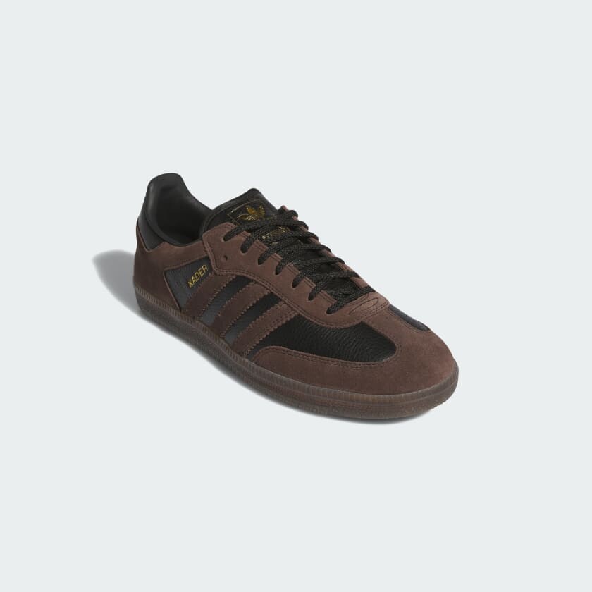 Кадер Силла сочетает в себе непринужденный стиль и чувство контроля, особенно для дней, полных гламура, энергии и характера. Samba ADV x Kader обновляет классический силуэт уникальными деталями, вдохновленными тонким намеком на семейные корни Кадера в Республике Кот-д'Ивуар в Западной Африке. Модель Kader Samba выполнена в насыщенной черно-коричневой цветовой гамме и фирменной резиновой подошве Samba, выполнена из мягкой кожи и замши премиум-класса, а также скрытым внутренним карманом, вдохновленным дизайном обуви для скейтбординга 90-х.