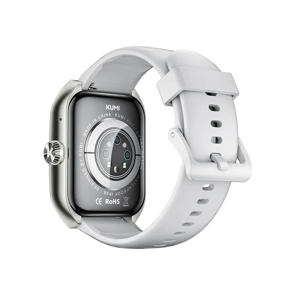 KUMI KU7 имеют квадратный дизайн корпуса, который выглядит стильно, модно и подходит как мужчинам, так и женщинам. Корпус умных часов KUMI KU7 изготовлен из цинкового сплава, а ремешок - из силикона. KU7 оснащены большим AMOLED-сенсорным экраном диагональю 1,96 дюйма, изогнутым стеклом 2,5D с разрешением 410 x 502 пикселей.