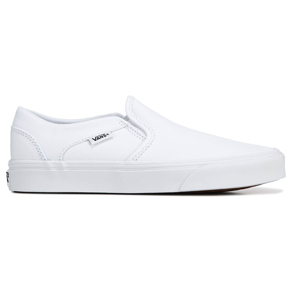Сохраняйте непринужденность и стильность в женских слипонах Asher от Vans. Верх из парусины или кожи в спортивном стиле для скейтбординга. Двойные эластичные вставки обеспечивают надежную посадку. Мягкий воротник. Текстильная подкладка с амортизирующей стелькой. Полосатая резиновая межподошва. Цепкая резиновая подошва.