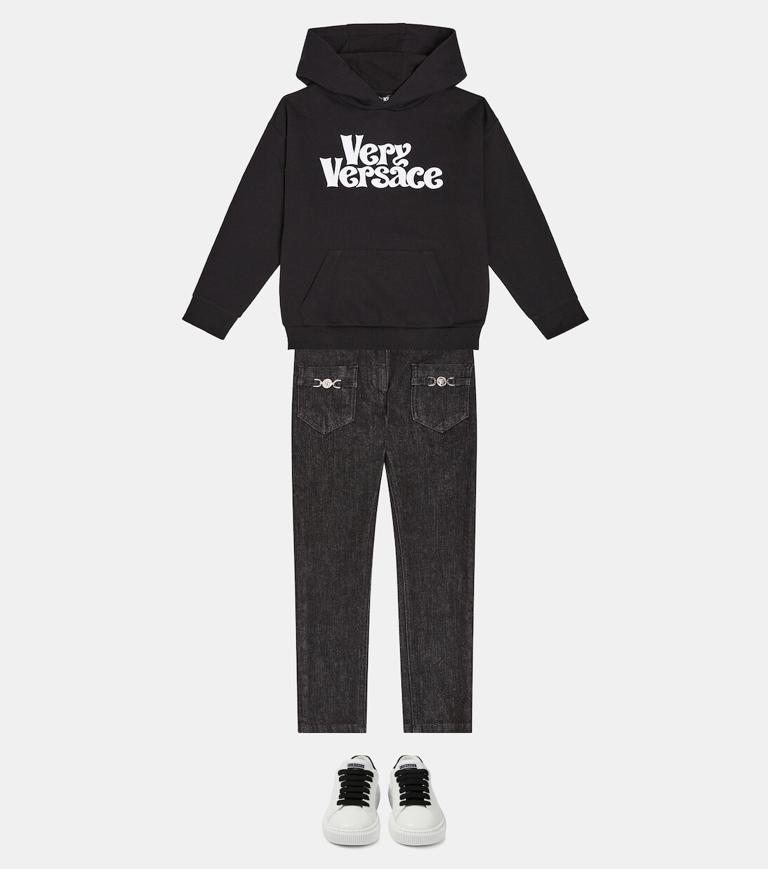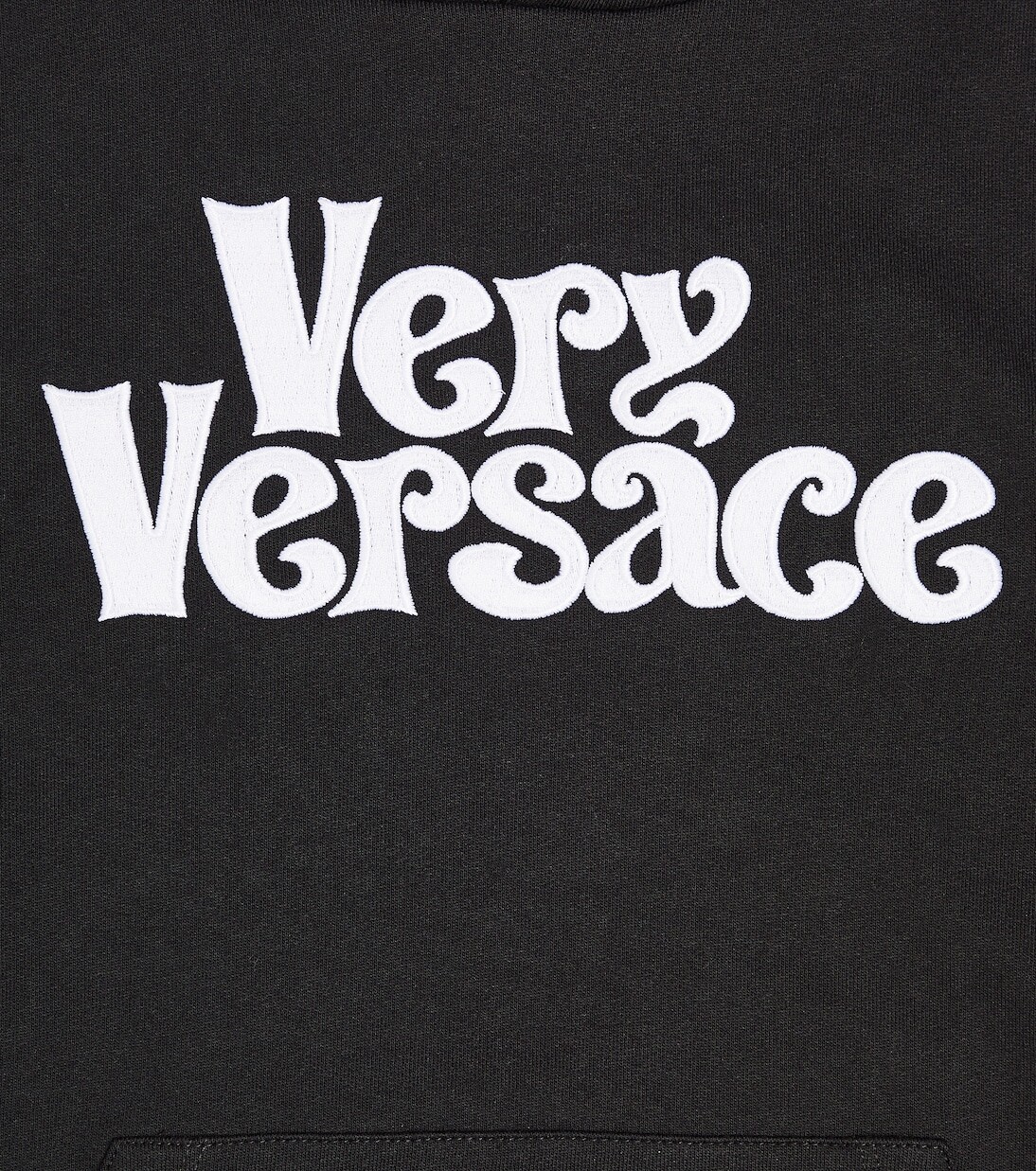 Эта черно-белая худи из хлопкового джерси с принтом логотипа Versace станет их любимой повседневной вещью. Эта непринужденная модель имеет фиксированный капюшон, карман-кенгуру и приталенные детали из ребристой вязки. Материал: 100% хлопок. Рекомендации по уходу: машинная стирка при 30 градусах. Сделано в Италии.