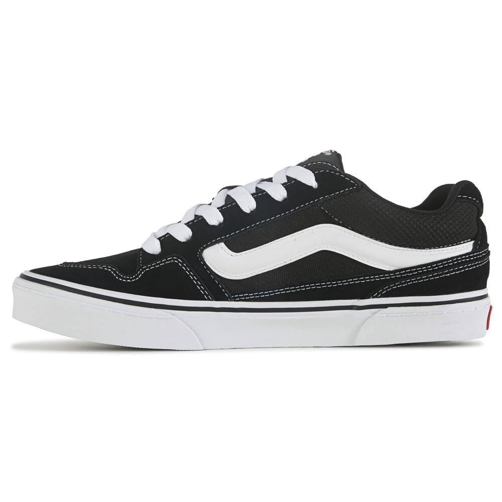 Подчеркните свою спортивную сторону с помощью мужских кроссовок для скейтбординга Vans Caldrone. Верх из парусины в стиле скейтерской обуви с круглым носком. Шнуровка спереди. Фирменная замшевая полоска Vans. Мягкий воротник. Текстильная подкладка с мягкой стелькой. Вулканизированная межподошва. Фирменная вафельная резиновая подошва.