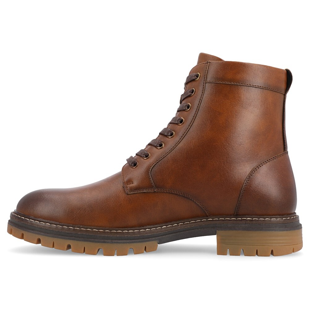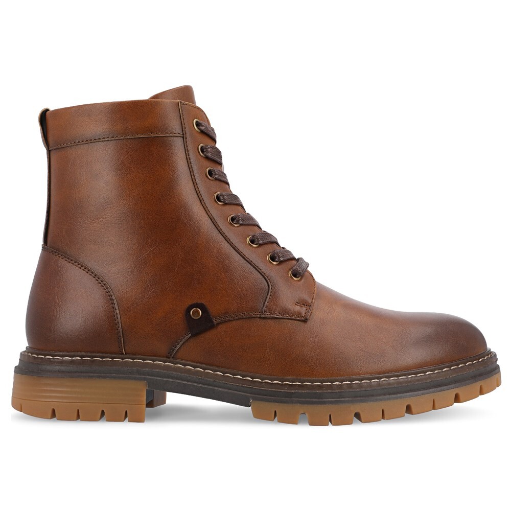 Гуляйте по городу стильно в мужских ботинках с простым носком Vance Co. Denver. Верх из веганской кожи в ботинках с круглым простым носком. Застежка на шнуровке. Мягкий язычок и воротник. Гладкая подкладка со стелькой Tru Comfort Foam толщиной 12 мм. Высота ботинка 6 дюймов, окружность икры 10 дюймов. Прочная резиновая подошва. блочный каблук 1,25 дюйма.