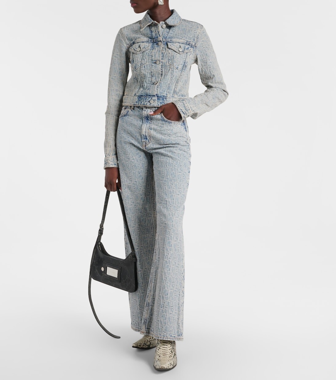 Укороченная джинсовая куртка из жаккарда Acne Studios, синий 60 768₽