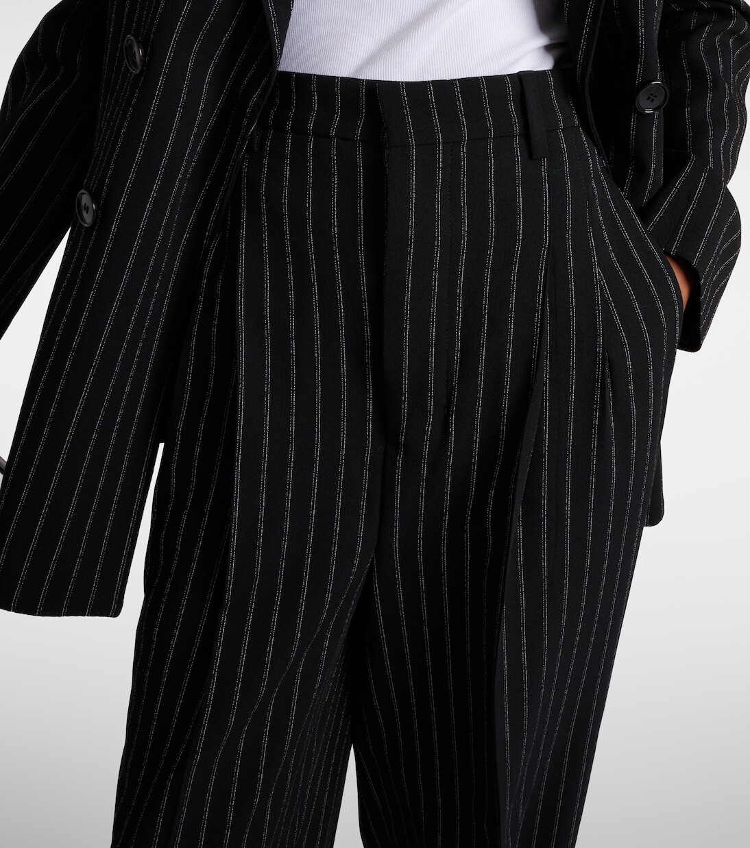 Широкие брюки из шерсти с высокой посадкой Ami Paris, черный