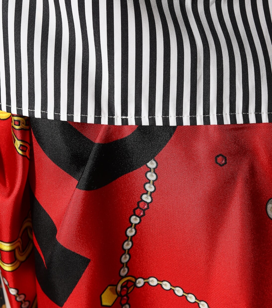 Это полосатое платье-рубашка, ключевой элемент коллекции Balenciaga Resort 2019, дополнено шелковыми шарфами с принтом, свисающими с подола. Модель на пуговицах квадратного силуэта, изготовленная в Италии из однотонного хлопка. Возьмите с собой пару кроссовок Speed Trainer для корректировки направления. Сделано в Италии. Рекомендации по уходу: машинная стирка при 30 градусах. Застежка: на пуговицах спереди. Материал II: 100% шелк. Карманы: нагрудный карман. Материал: 100% хлопок.