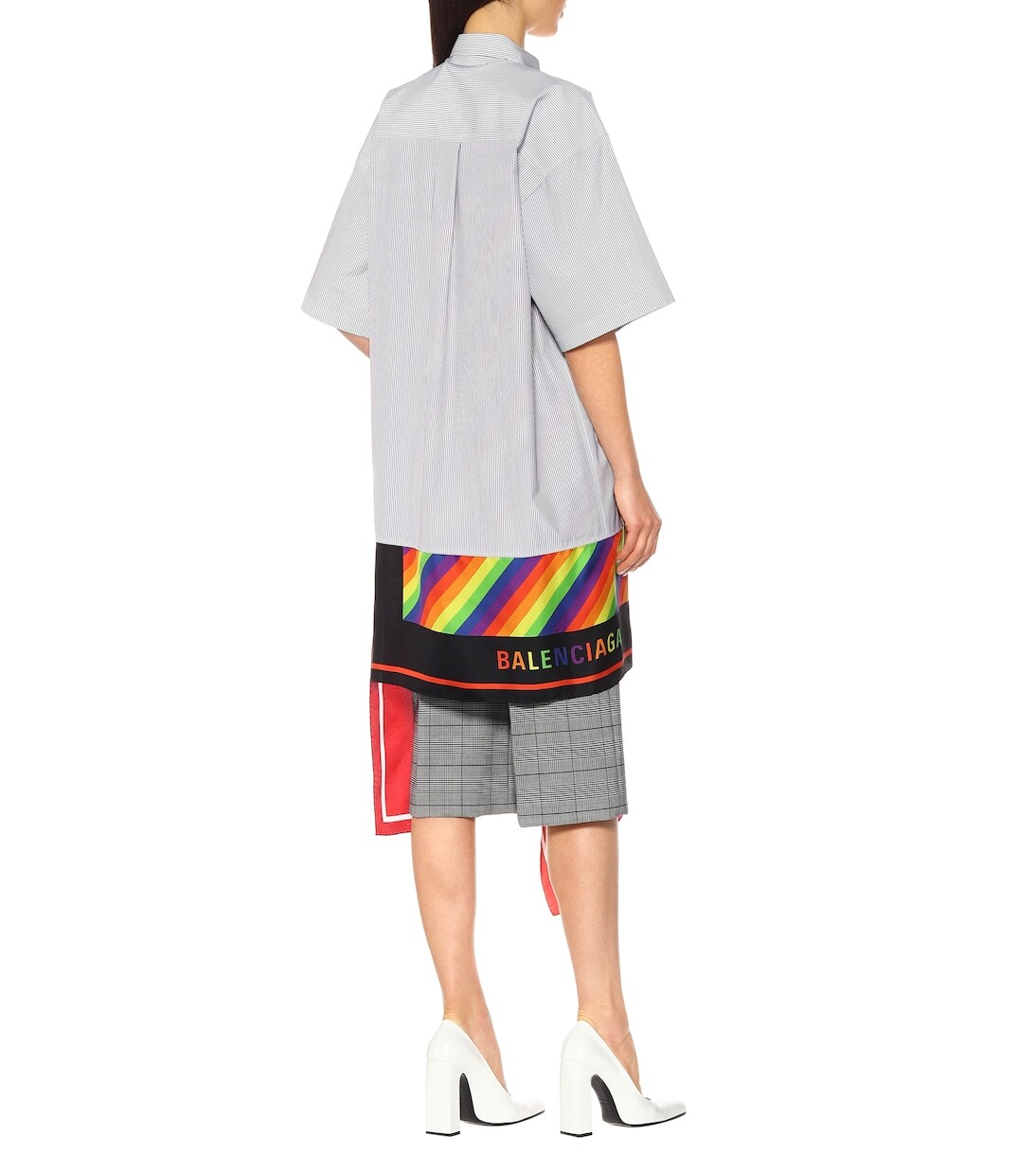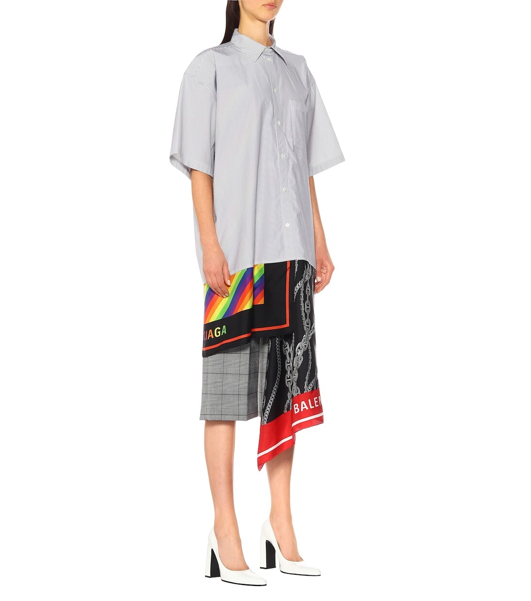 Платье-рубашка Scarf от Balenciaga дополнено шелковыми шарфами с принтом, свисающими с подола. Модель на пуговицах квадратного силуэта, изготовленная в Италии из однотонного хлопка. Дополните образ кроссовками Speed, чтобы создать стильный образ. Сделано в Италии. Застежка: на пуговицах спереди. Материал II: 100% шелк. Рекомендации по уходу: сухая чистка. Карманы: нагрудный карман. Материал: 100% хлопок.