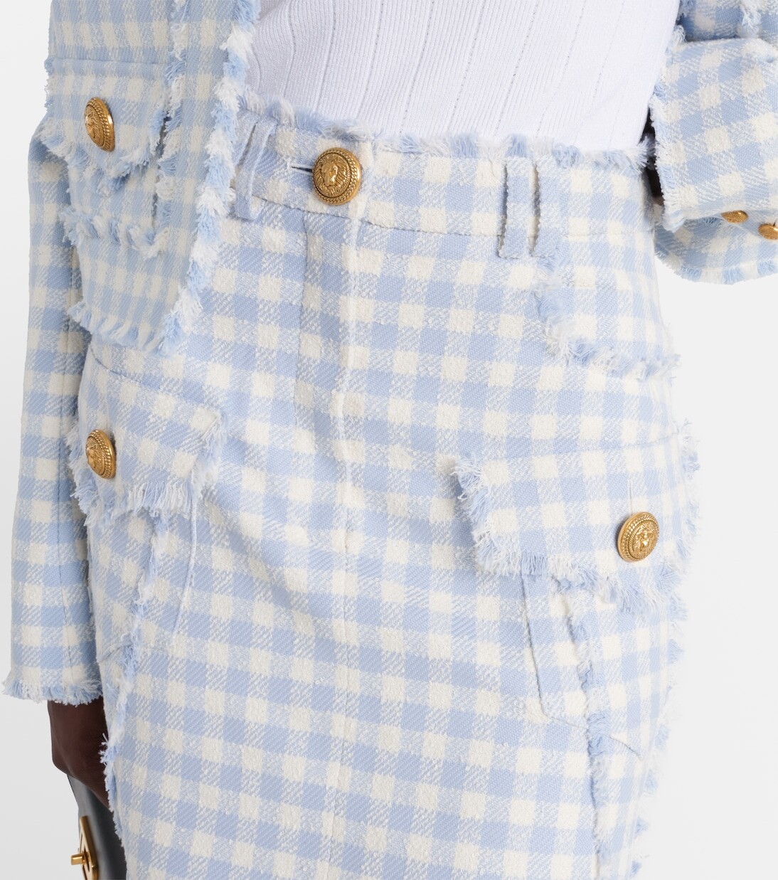 Мини-юбка из хлопкового твида в клетку Balmain, синий
