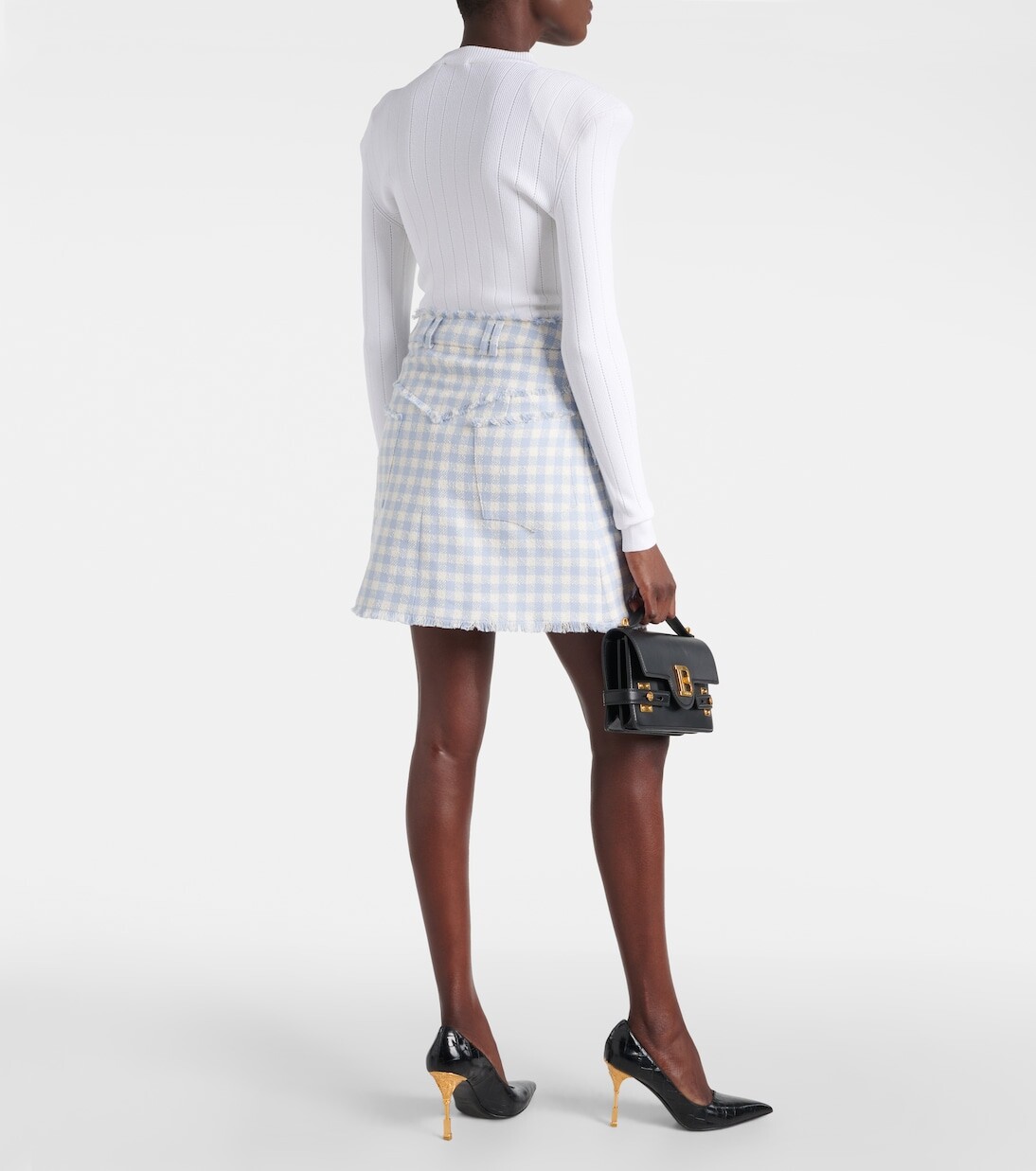 Мини-юбка из хлопкового твида в клетку Balmain, синий 116 497₽