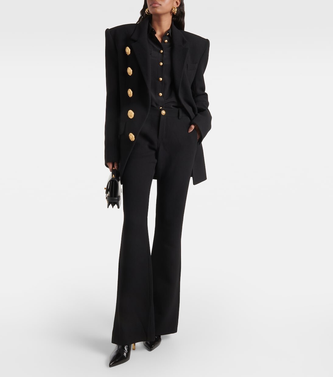 Брюки из крепа из натуральной шерсти Balmain, черный