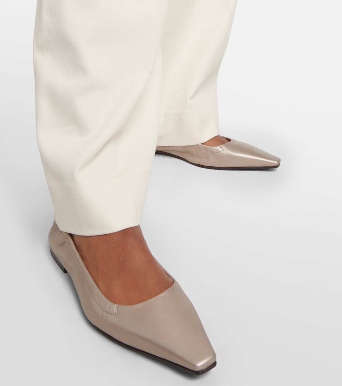 Кожаные балетки металлик Brunello Cucinelli, серебряный