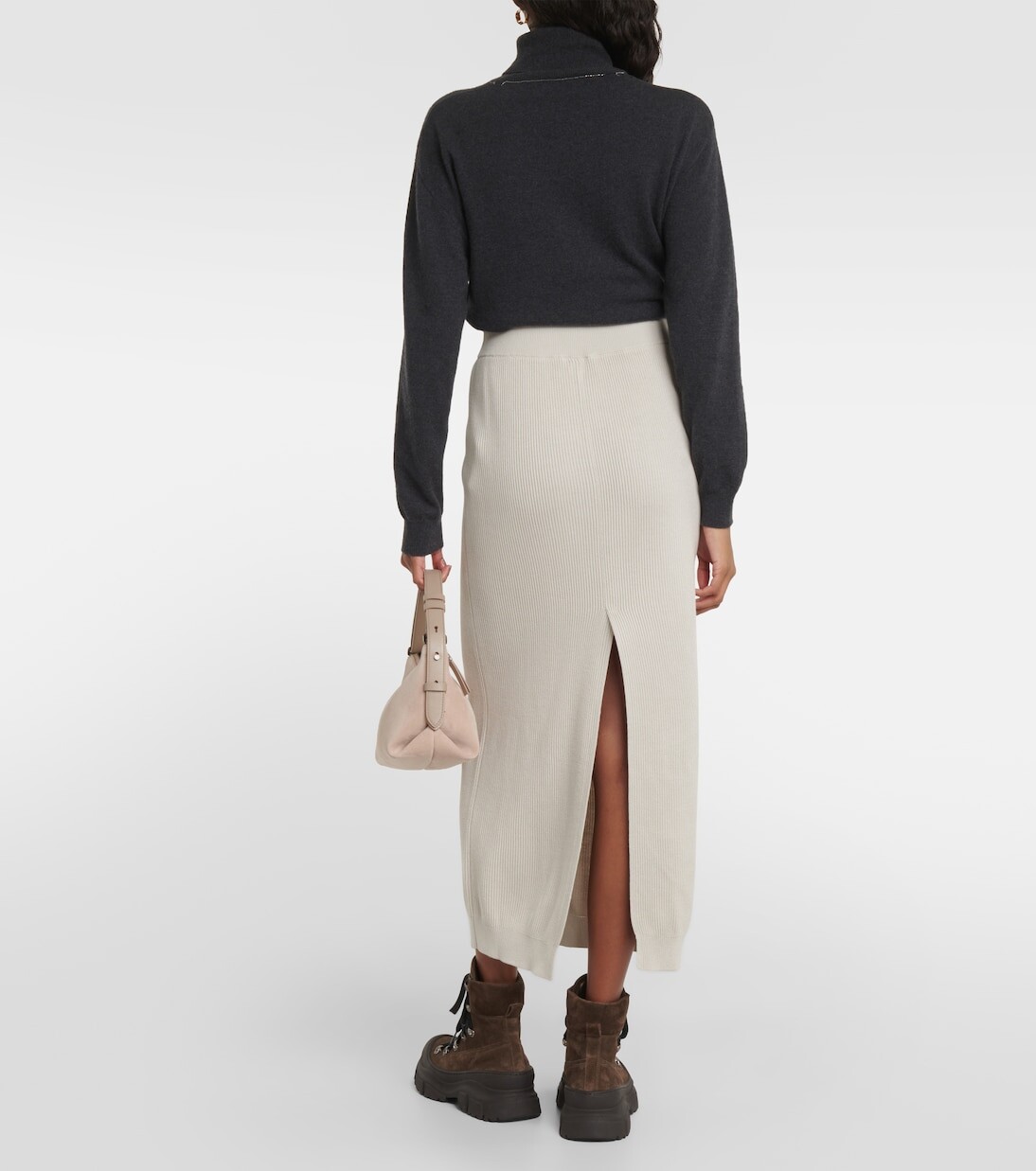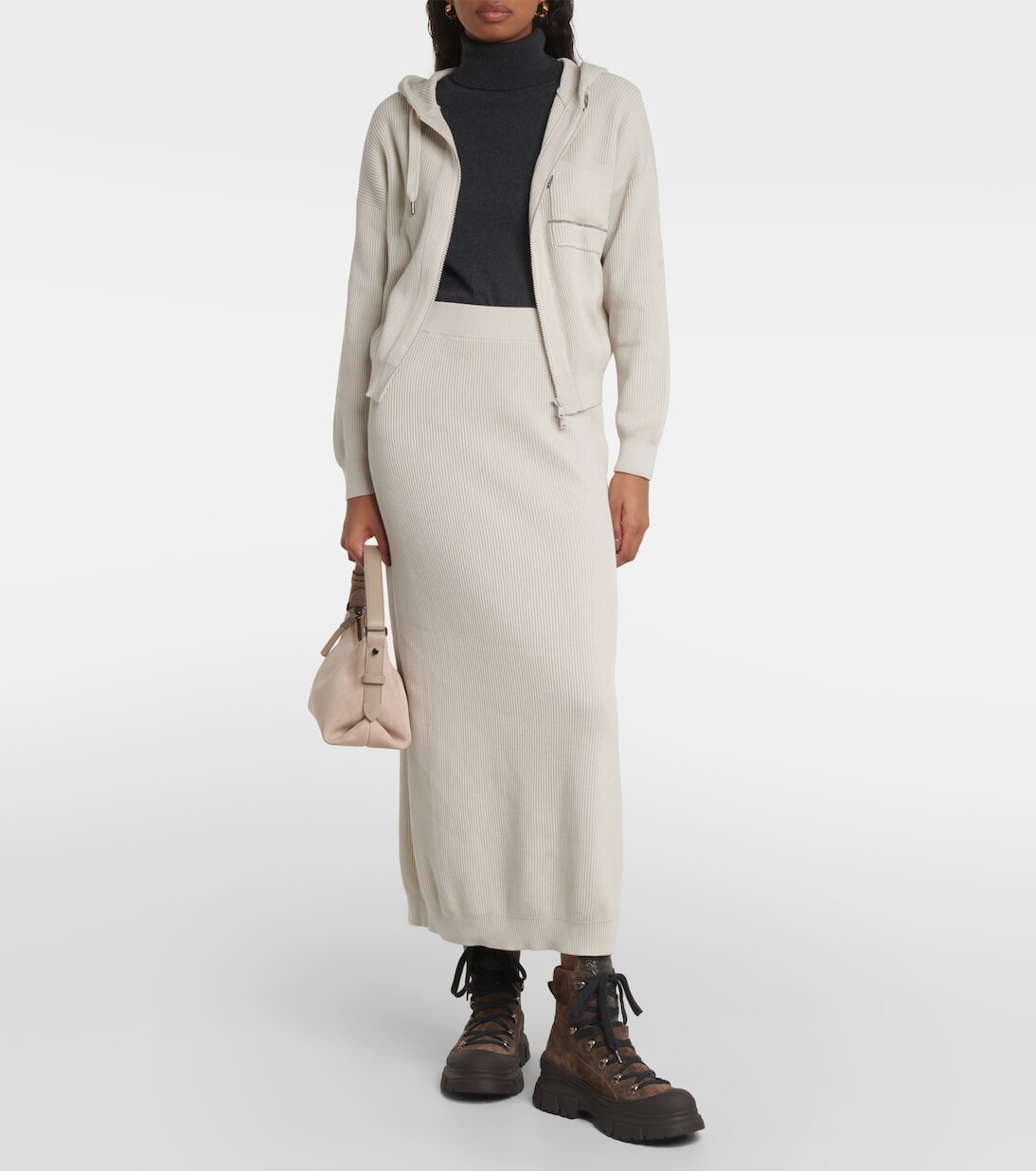 Юбка миди из хлопка в рубчик Brunello Cucinelli, белый 129 905₽