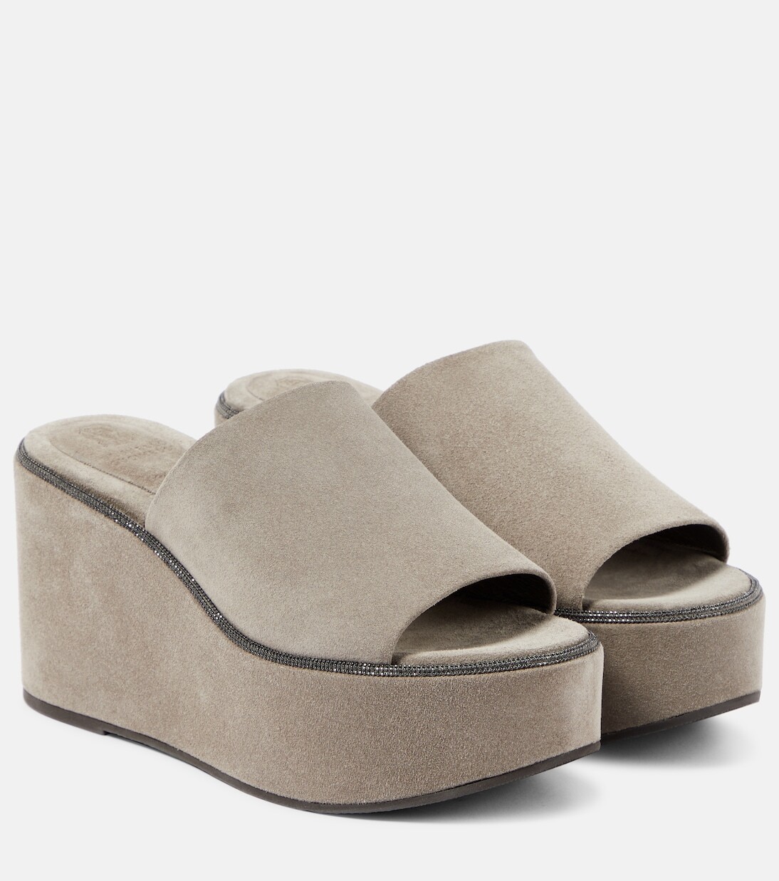 Замшевые шлепанцы на платформе Brunello Cucinelli, серый