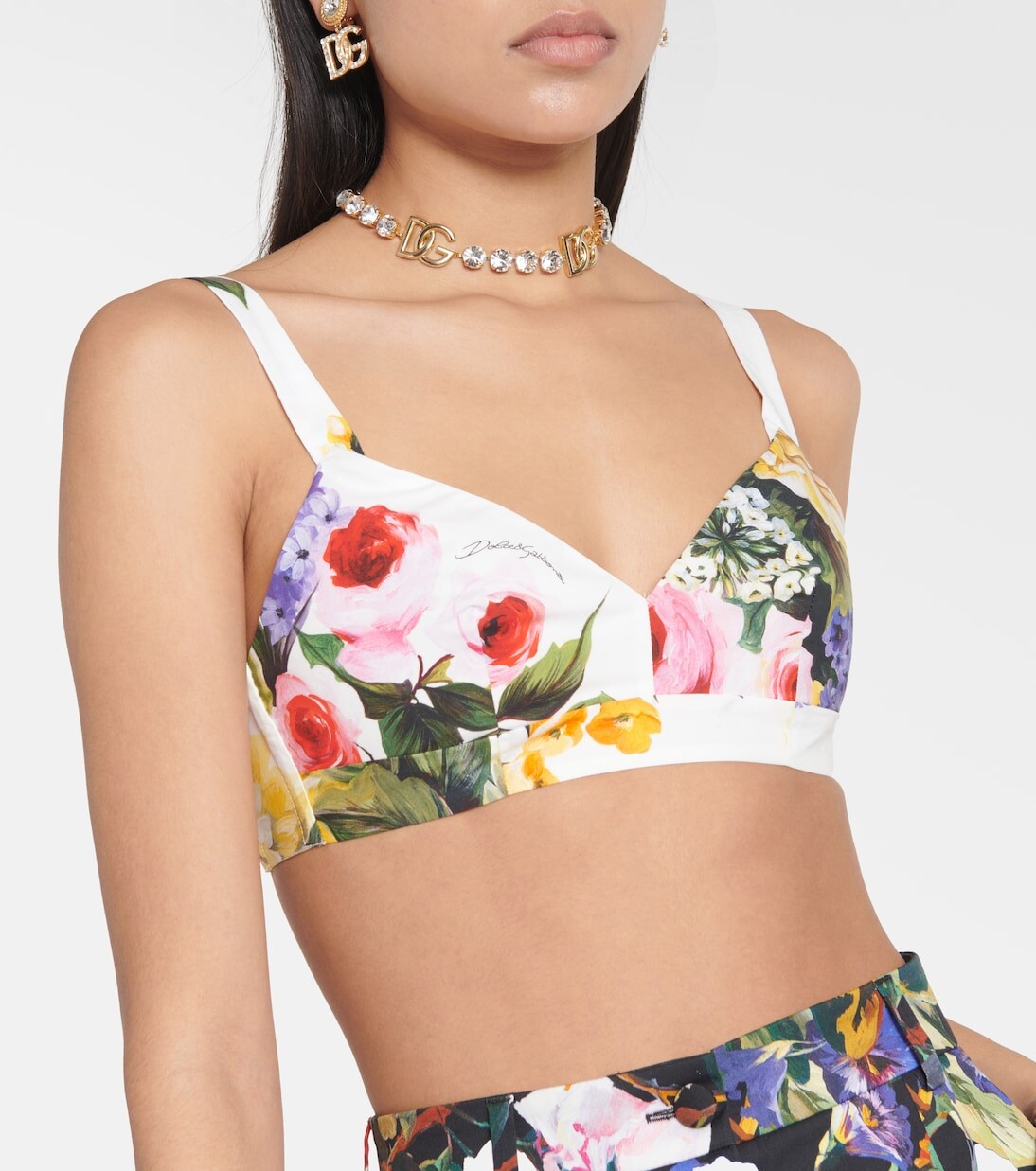 Хлопковый бюстгальтер с цветочным принтом Dolce&Gabbana, мультиколор