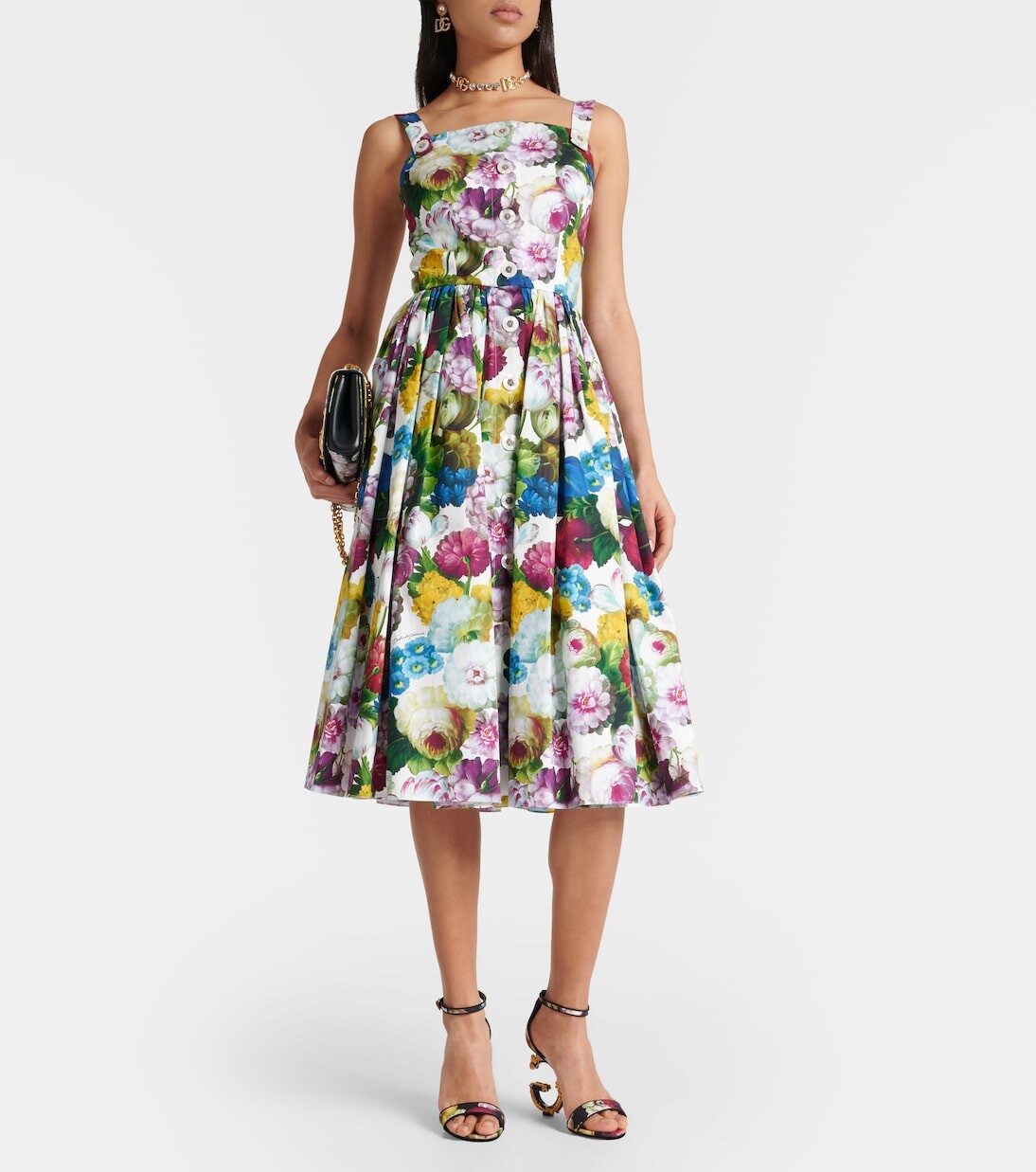 Хлопковое платье миди с цветочным принтом Dolce&Gabbana, мультиколор