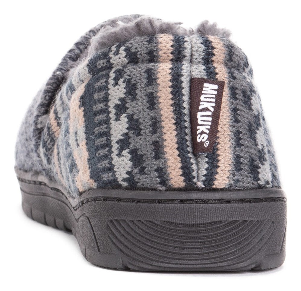 Когда вы войдете в комфорт, остаток дня улетучится; Кристофер Слиппер от Мук Люкс. Верх из ткани в виде тапочек с круглым носком. Легко скользит. Трикотажные узоры. Свободная посадка для естественного комфорта. Мягкая подкладка из искусственного меха с удобной стелькой. Прочная резиновая подошва из TPR для сцепления внутри и снаружи.
