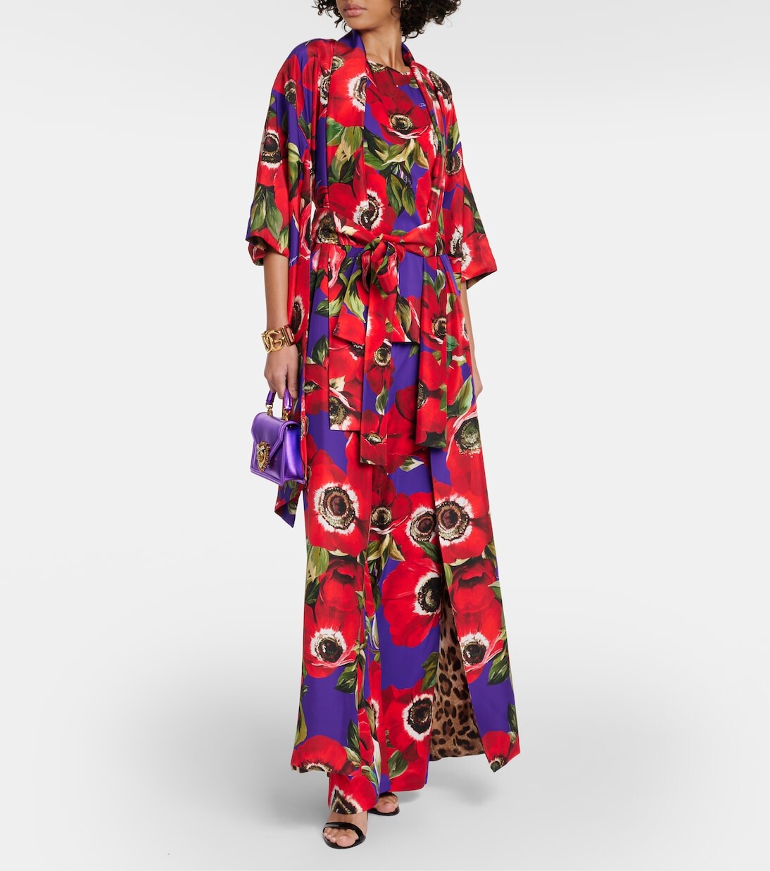 Шелковый халат с цветочным принтом Dolce&Gabbana, мультиколор